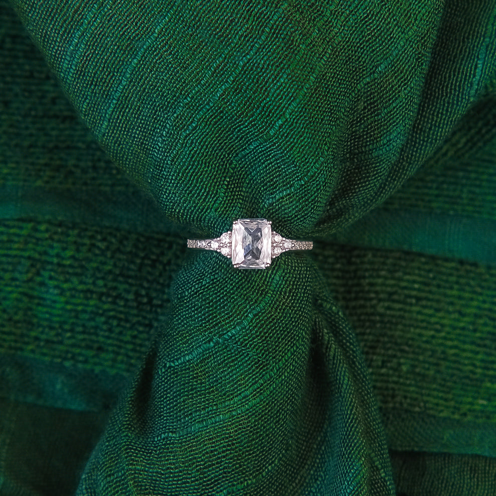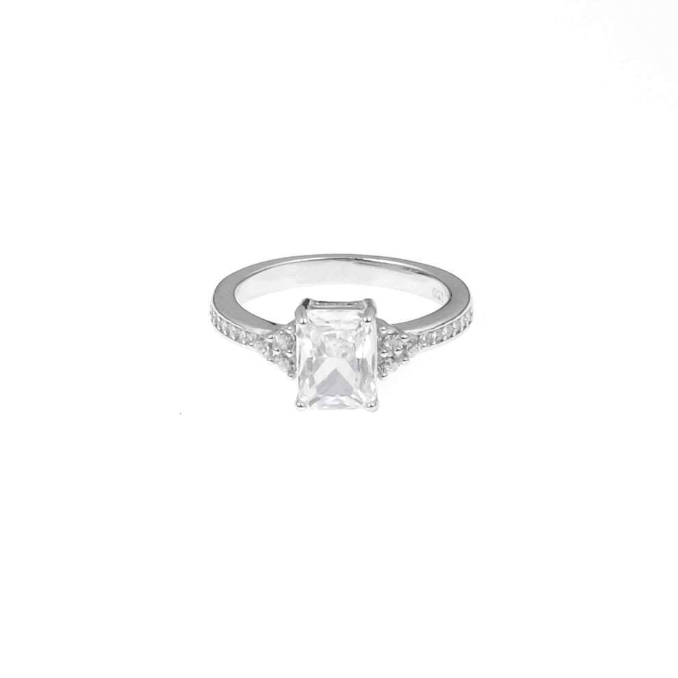 - 92.5 Sterling Silver Single rectangle Stone ladice Ring