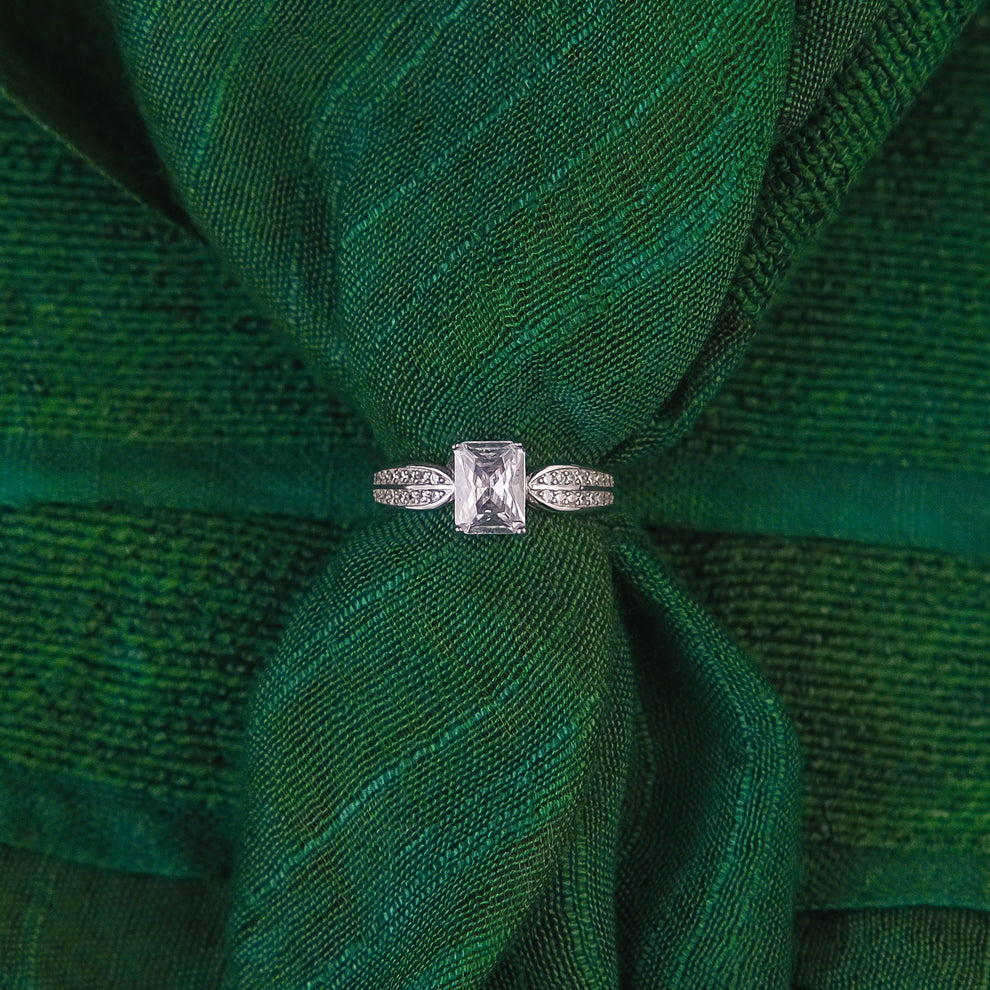 - 92.5 Sterling Silver Single rectangle Stone ladice Ring