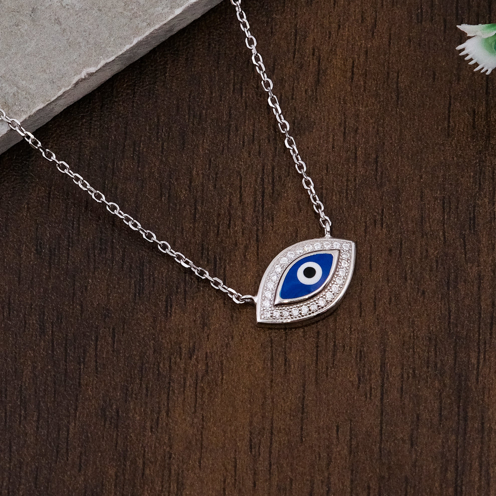 - Silver Cz Evil Eye Pendant chain set